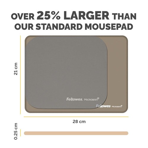 • Over 25 percent larger than our standard mousepads to encourage greater movement, reducing small repetitive movements which can cause wrist pain.