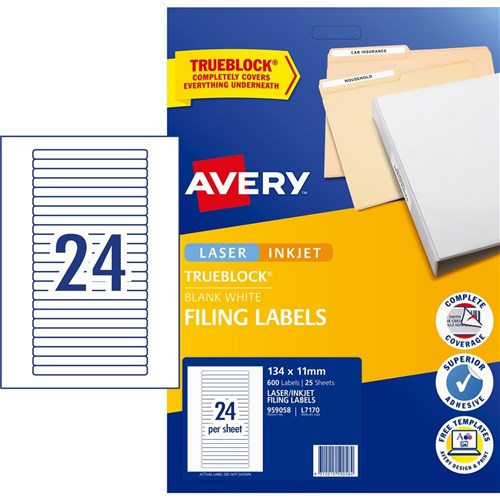 Avery Filing Laser & Inkjet Labels White L7170 134x11mm 24UP 600 Labels 25 Sheets