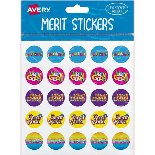 Avery Merit Stickers Caption 2 Round 22mm 5 Designs Assorted Colours 300 Stickers