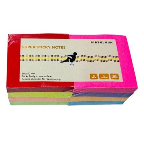 Bibbulmun Super Sticky Notes 50 x 50mm Assorted Pack Of 8