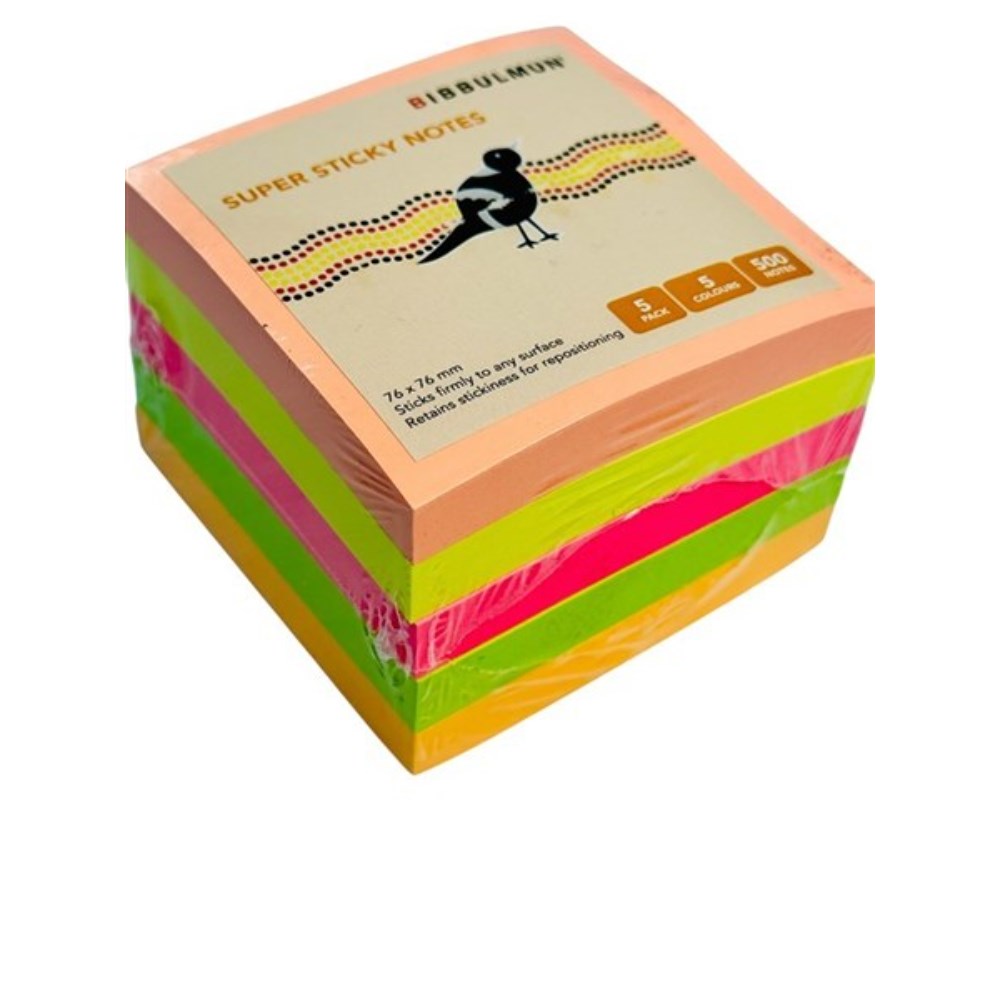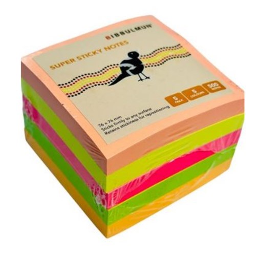 Bibbulmun Super Sticky Notes 76 x 76mm Neon Assorted Pack Of 5