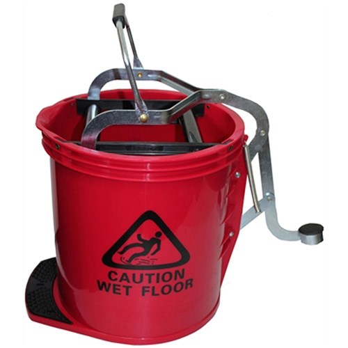 Cleanlink Heavy Duty Plastic Mop Bucket Metal Wringer 16 Litres Red