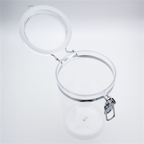 • Air-tight lid with chrome clip.