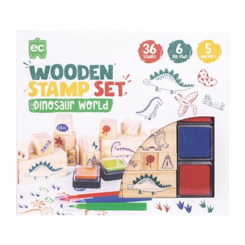 Educational Colours Wooden Stamp Set Dinosaurs