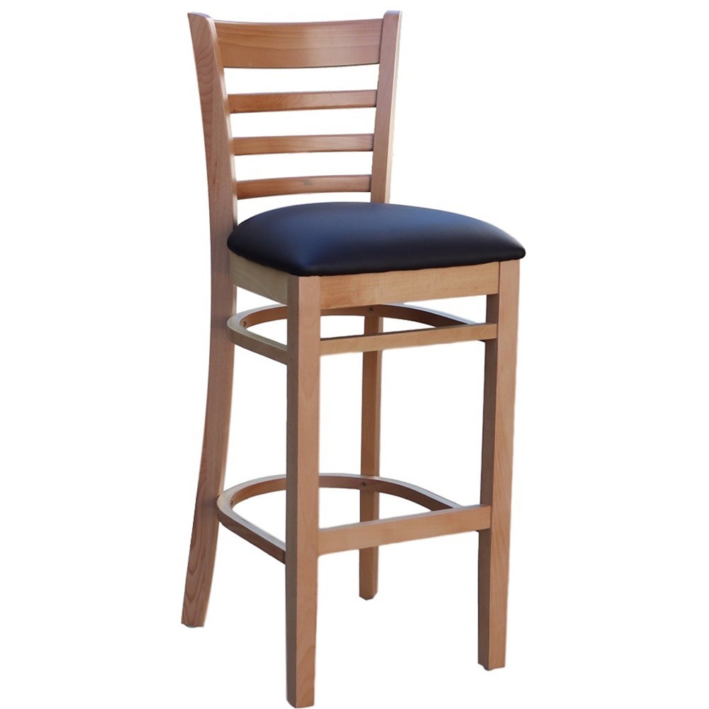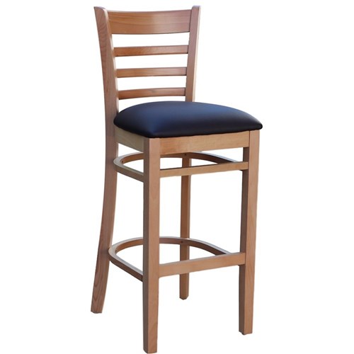 Florence Indoor Barstool Solid Timber Natural Frame Chocolate Padded Vinyl Seat