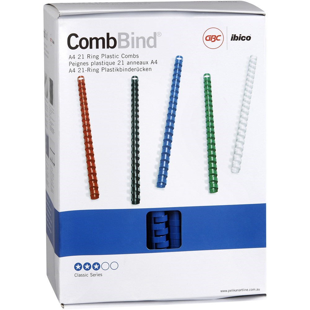 GBC Plastic Binding Comb 19mm 21 Loop 160 Sheets Capacity Blue Pack Of 100