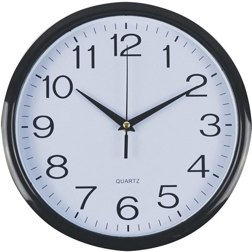 Italplast Wall Clock 43cm Round With Large Numbers Black Frame White Face