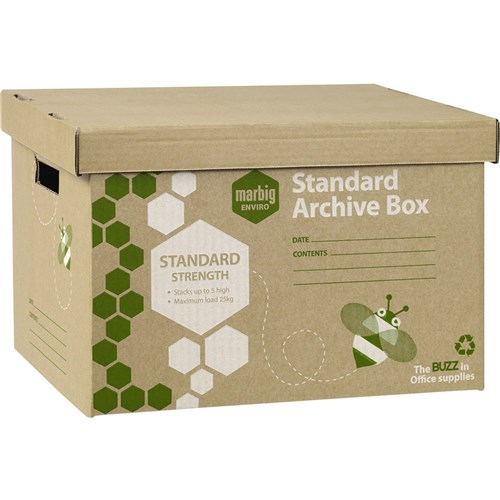 Marbig Enviro Standard Archive Boxes 315W x 420D x 260mmH Brown Pack Of 5
