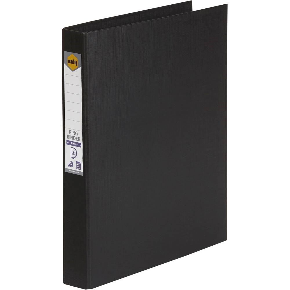 Marbig Linen PE Binder A4 3D Ring 25mm Black