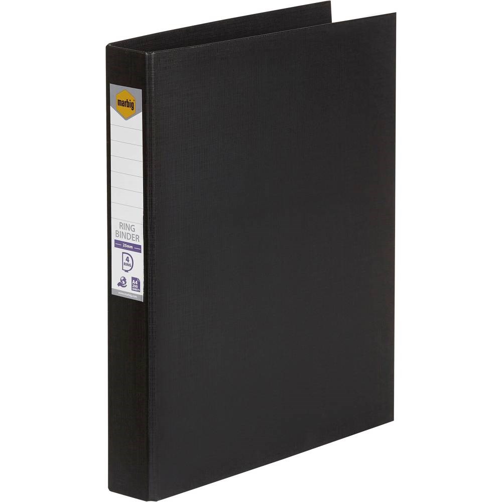 Marbig Linen PE Binder A4 4D Ring 25mm Black