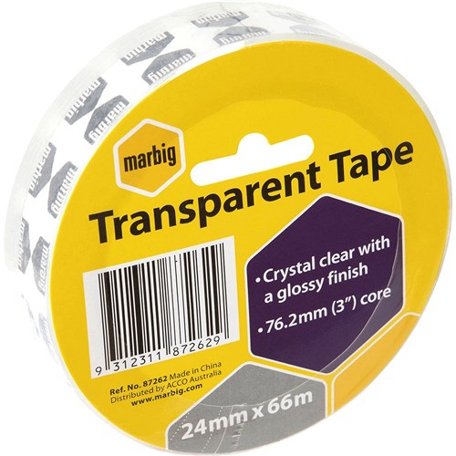 Marbig Office Tape 24mm x 66m 76.2mm Core Clear