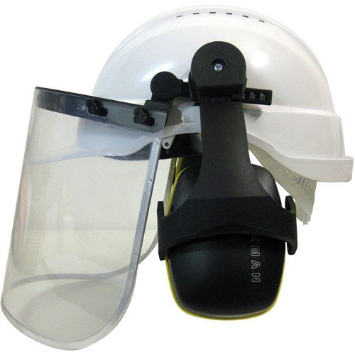 Maxisafe Helmet With Clear Visor And Earmuffs White