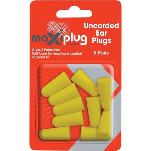 Maxisafe MaxiPlug Ear Plugs Disposable Uncorded 26dB Yellow Pack Of 5 Pairs