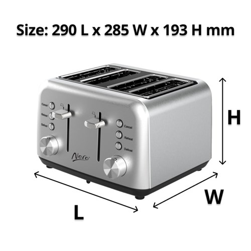 Nero 4 Slice Toaster Classic Style Stainless Steel