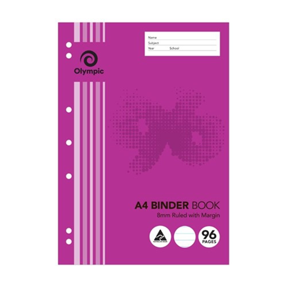 Olympic B896 Binder Book A4 7 Hole Punched 8mm Ruled With Margin 96 Page
