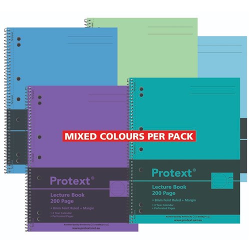 Protext Lecture Book Poly Cover A4 8mm Ruled With Margin 200 Page Pack Of 5 Assorted
