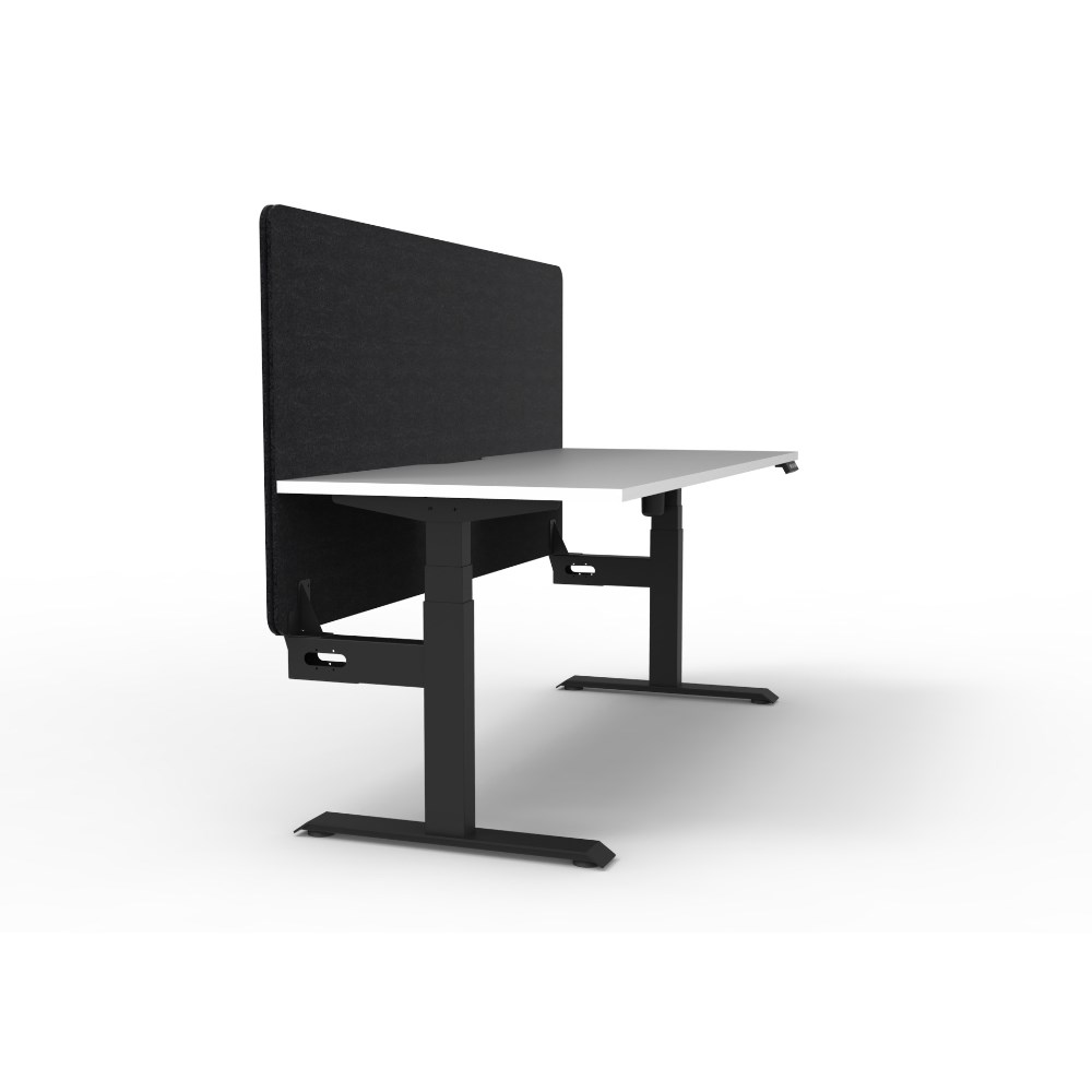 • Electric height adjustable single sided workstation with Natural White top and Black Satin frame, Black Eco screen.