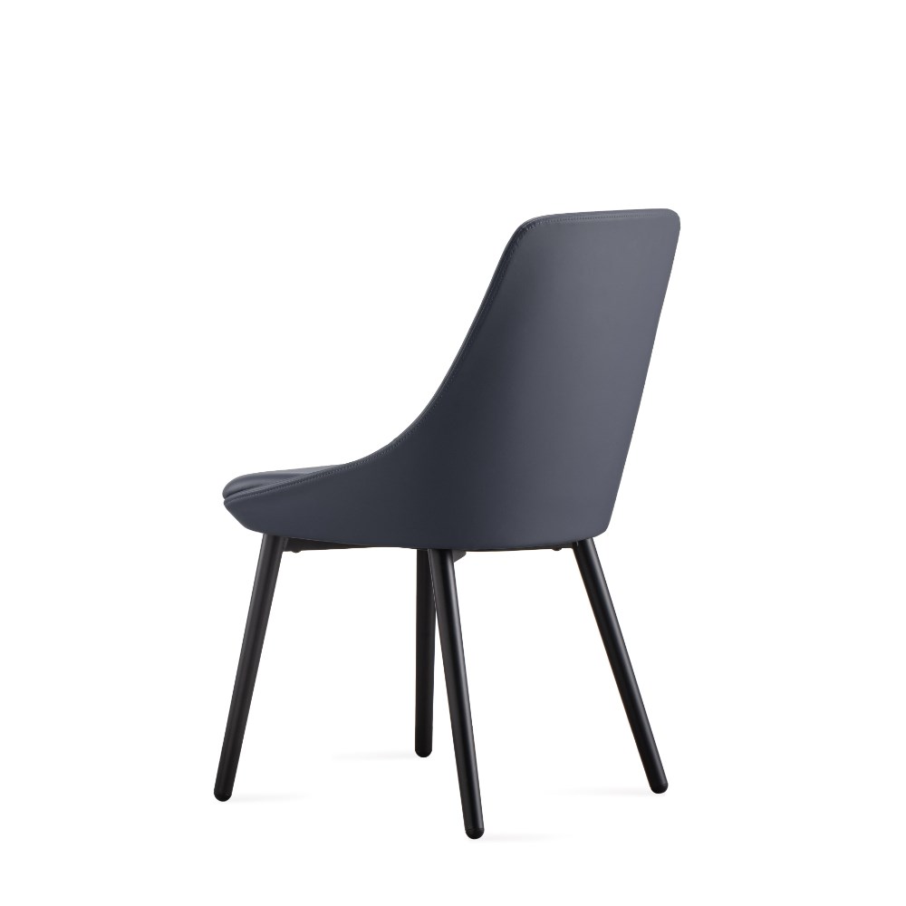 • Robust steel 4 leg frame finished in black powder coat French Navy PU leather seat.
