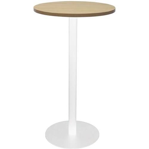 Rapidline Estillo Disc Base Dry Bar Table 600D x 1085mmH Oak Top White Base