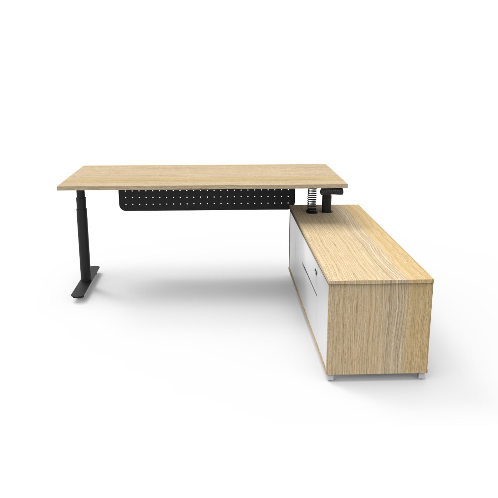 Rapidline Halo+ Executive Desk + RHS Cabinet + Panel 2020W x 2011D x 620-1270mmH Oak/Black
