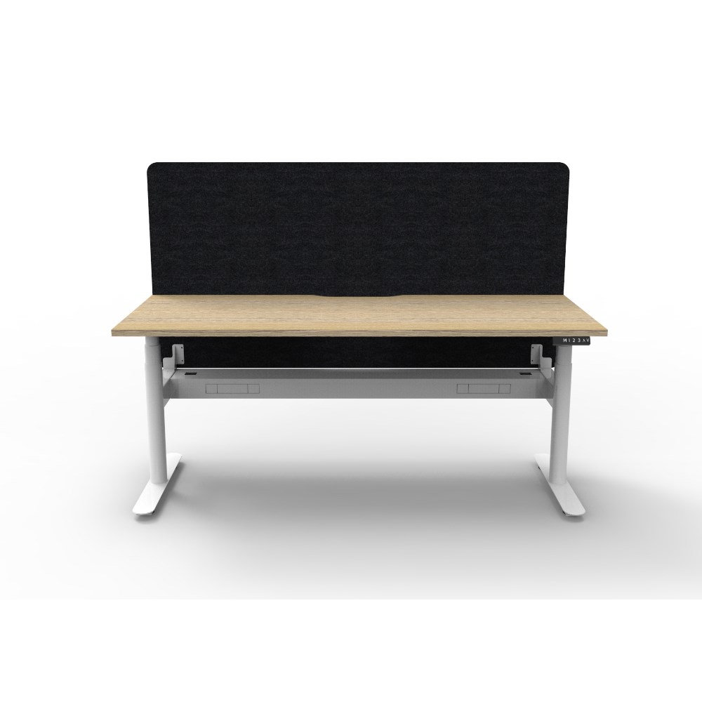 Rapidline Halo+ Single Sided Workstation + Black Eco Screen +Tray 1200Wx620-1270mmH Oak/Wh