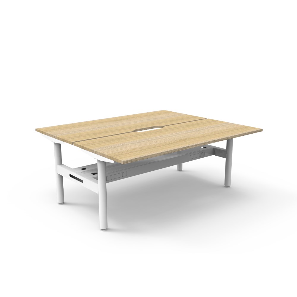 • Natural Oak top White Satin frame. Double sided workstation with cable tray.