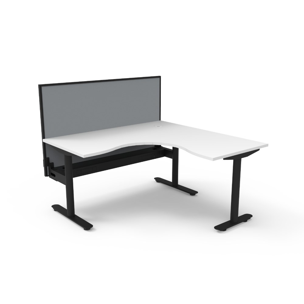 Rapidline Halo Static Corner Workstation + Screen + Tray 1500/1500W x 1330mmH White/Blk