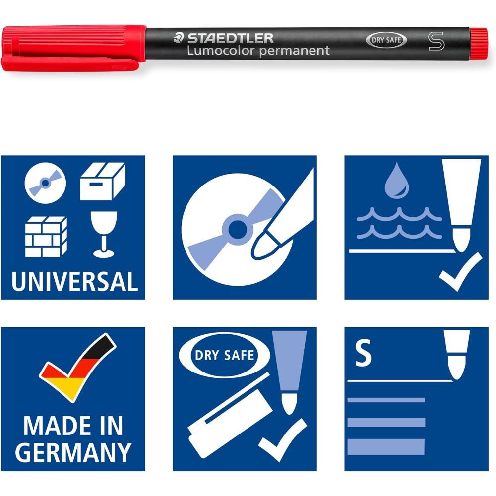 Staedtler 313 Lumocolor Permanent Pens Superfine 0.4mm Assorted Colours Wallet Of 8