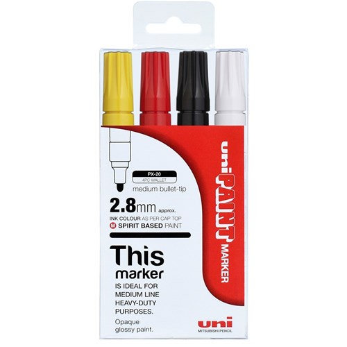 Uni-Ball PX-20 Paint Marker Bullet 2.8mm Assorted Colours Pack Of 4