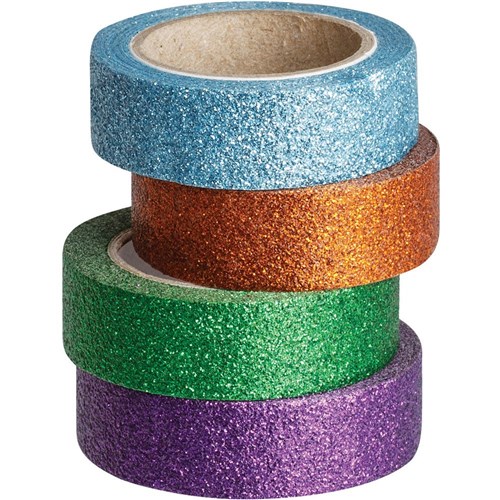 Zart Washi Glitter Tape 15mmx2.7m Assorted Colours Pack of 8